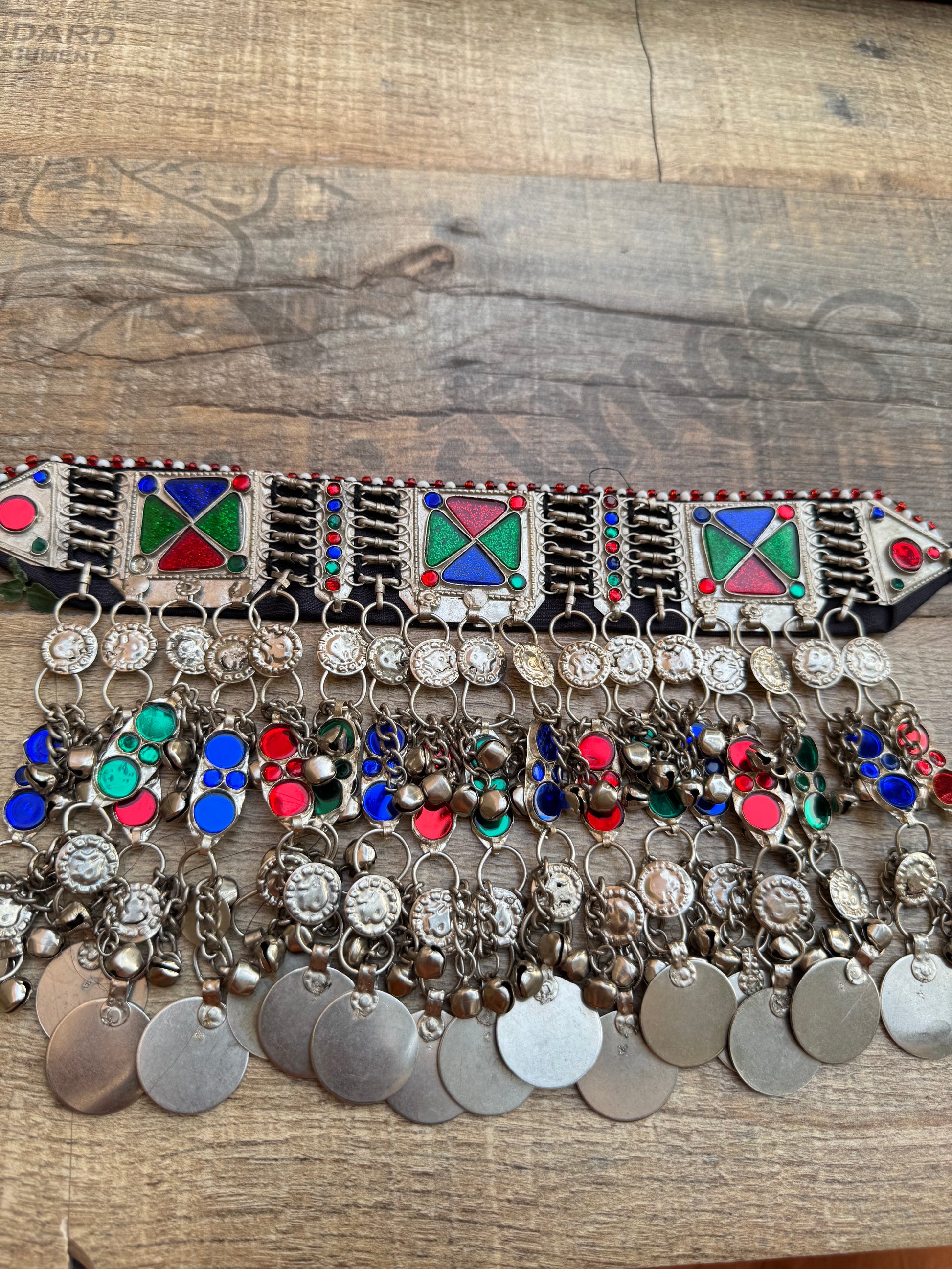 Handcrafted by skilled Afghan artisans, this statement necklace features intricate metalwork, vibrant stones, and traditional tribal patterns that reflect the rich heritage of Afghan jewelry.